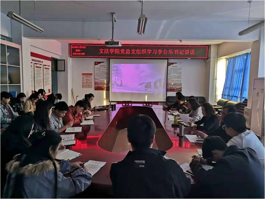 11月25日下午,文法公司党总支组织师生党员在党建活动室学习《李公乐书记在伟德国际1946源自英国主题教育专题党课上的讲话》。会议由党总支书记张琳主持,全体师生党员参加。